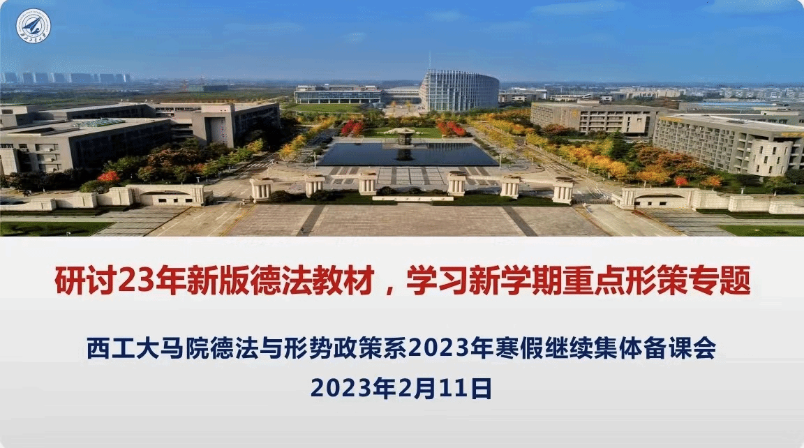 德法与形势政策系组织全体专兼职教师于线上召开了“研讨2023年新版德法教材,学习新学期重点形策专题”2023年寒假继续集体备课会。系主任高宝营副教授带领各位老师研讨2023年新版《思想道德与法治》课程教材,学习新学期《形势与政策》课程重点专题“立志复兴伟业,踔厉奋发前行”。与会教师就新版教材与《形势与政策》专题是如何融入和体现党的二十大精神的教学内容和教学方法进行了广泛研究和探讨。会议总结了新版教材中重点融入及体现党的二十大精神的专题内容,就重点专题“立志复兴伟业,踔厉奋发前行”的教学内容与教学方式等方面交流意见。通过本次寒假继续集体备课,全体教师对新学期教学有了更准确的指导思想遵循、更丰富的备课知识掌握与更坚实的教育教学信心。