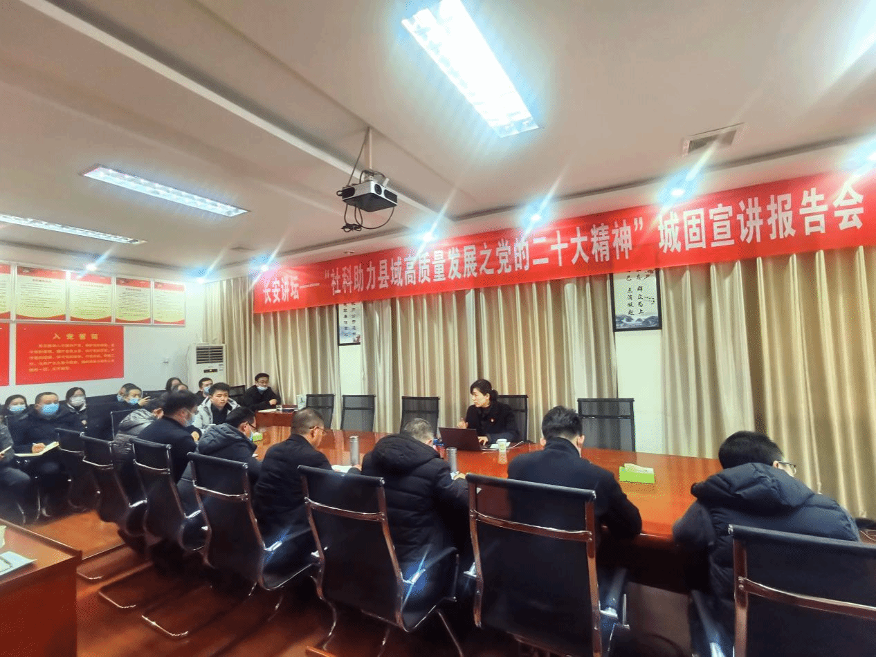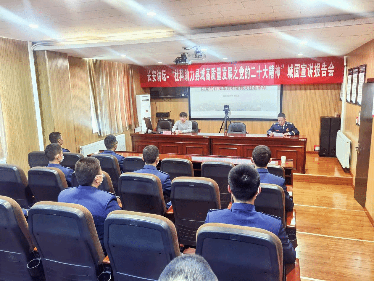党的二十大是在我国迈上全面建设社会主义现代化国家新征程、向第二个百年奋斗目标进军的关键时刻召开的一次十分重要的大会,举国关注、世界瞩目。党的二十大担负起全党的重托和人民的期待,从战略全局深刻阐述了新时代坚持和发展中国特色社会主义的一系列重大理论和实践问题,科学谋划了未来一个时期党和国家事业发展的目标任务和大政方针,在党和国家历史上具有重大而深远的意义。学习宣传贯彻好党的二十大精神,是当前和今后一个时期全党全国的重要政治任务,也是社科工作者必须肩负起的重大历史责任。2023年2月9日至10日,“社科助力县域高质量发展”西北工业大学“党的二十大精神宣讲团”赴城固县开展理论宣讲。本次宣讲活动由西北工业大学马克思主义学院高红波副教授、王换助理教授、宫淑燕副教授等一行3人,先后赴城固县消防救援大队、城固县发改系统作宣讲报告,相关部门人员参加了报告会。