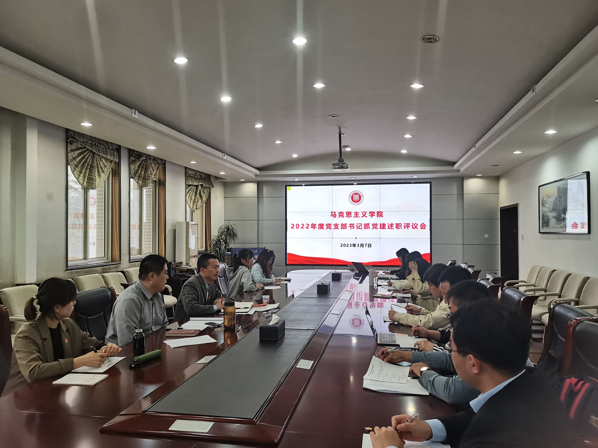 为进一步推动全面从严治党向基层延伸,切实提升党建工作质量,落实我校《关于开展2022年度党支部书记抓党建述职评议考核工作的通知》相关要求。2023年3月8日马克思主义学院学生党支部在学院楼208召开了“2022年度学生党支部书记抓党建工作述职评议考核会”。会议由学院党委副书记李刚主持,学院党委副书记(主持工作)蒲传新、学院团工委书记王换以及各学生党支部书记参与了此次会议。