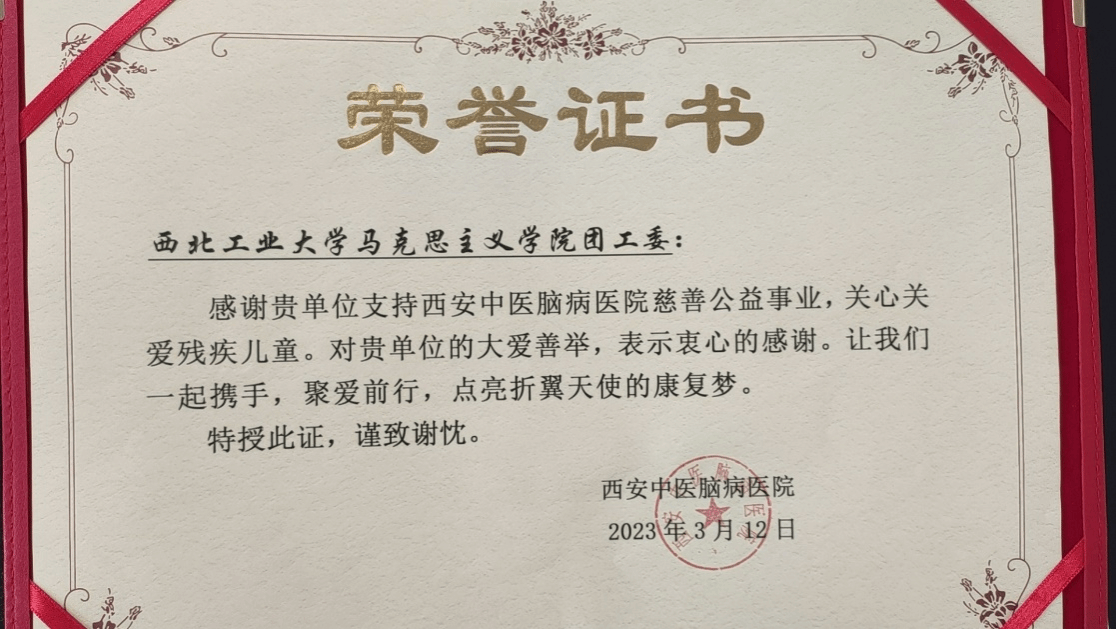 西北工业大学马克思主义学院始终坚持“育人的根本在于立德”的理念,高度重视精神文明建设,积极参与志愿者服务活动,努力使学雷锋活动融入日常、化作经常。活动由德法与形势政策系折军老师、中国近现代史基本问题研究系山磊老师带队,学院研究生志愿者杨京翰、张肖丽、黄蓉、王烨婷、吴思怡、李云龙、王枫、李树炜等同学积极参与,开展了卓有成效的志愿服务,给家长们送去了温暖,给孩子们带去了欢乐,受到大家的一致好评,并受到西安中医脑病医院的特别致谢。