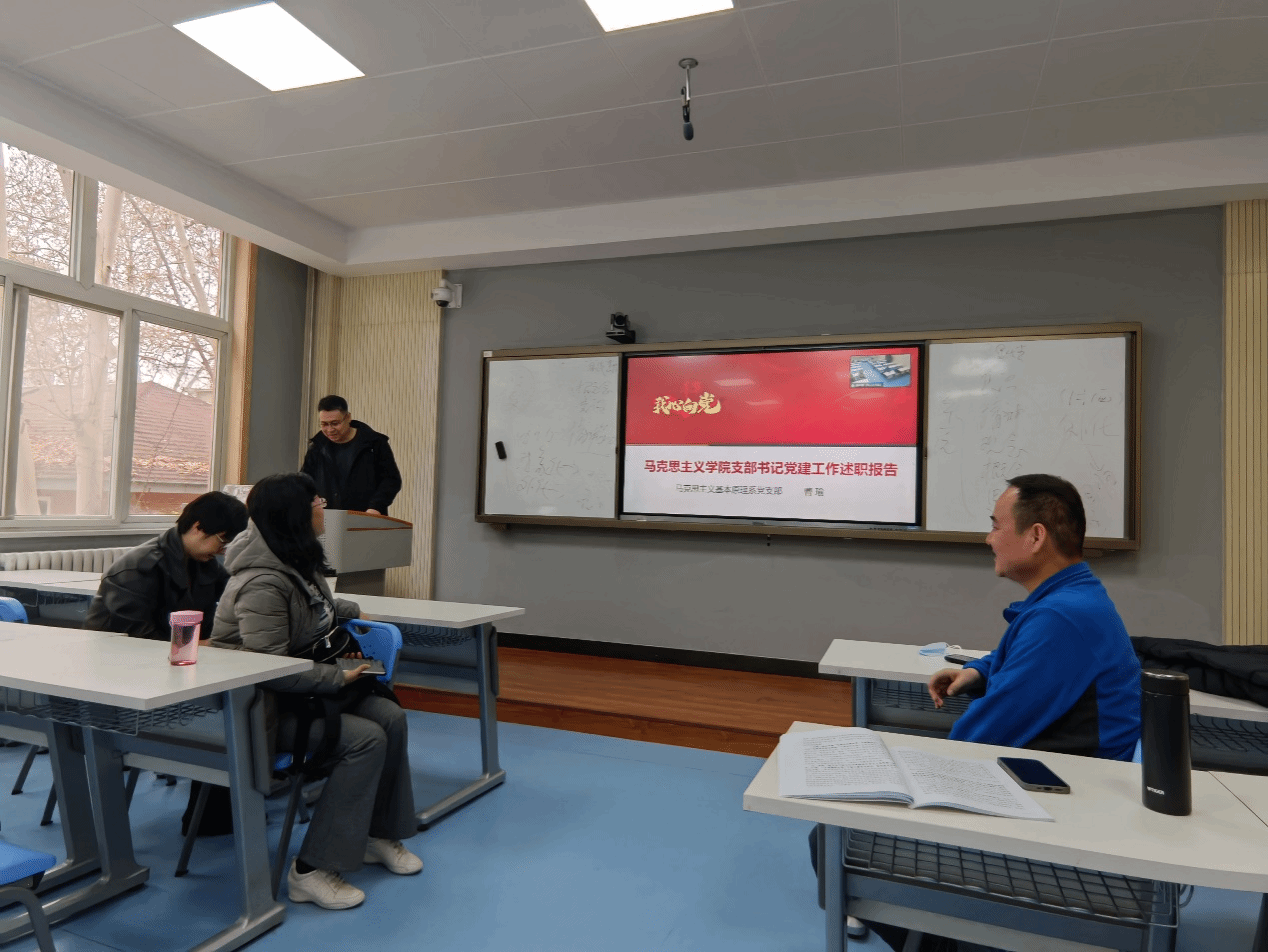 紧接着,支部书记曹瑜代表支委会述职,全面展示了马原理系党支部一年以来所取得的各项成绩,客观分析了目前仍存在的不足,并提出了下一步工作思路与整改计划。