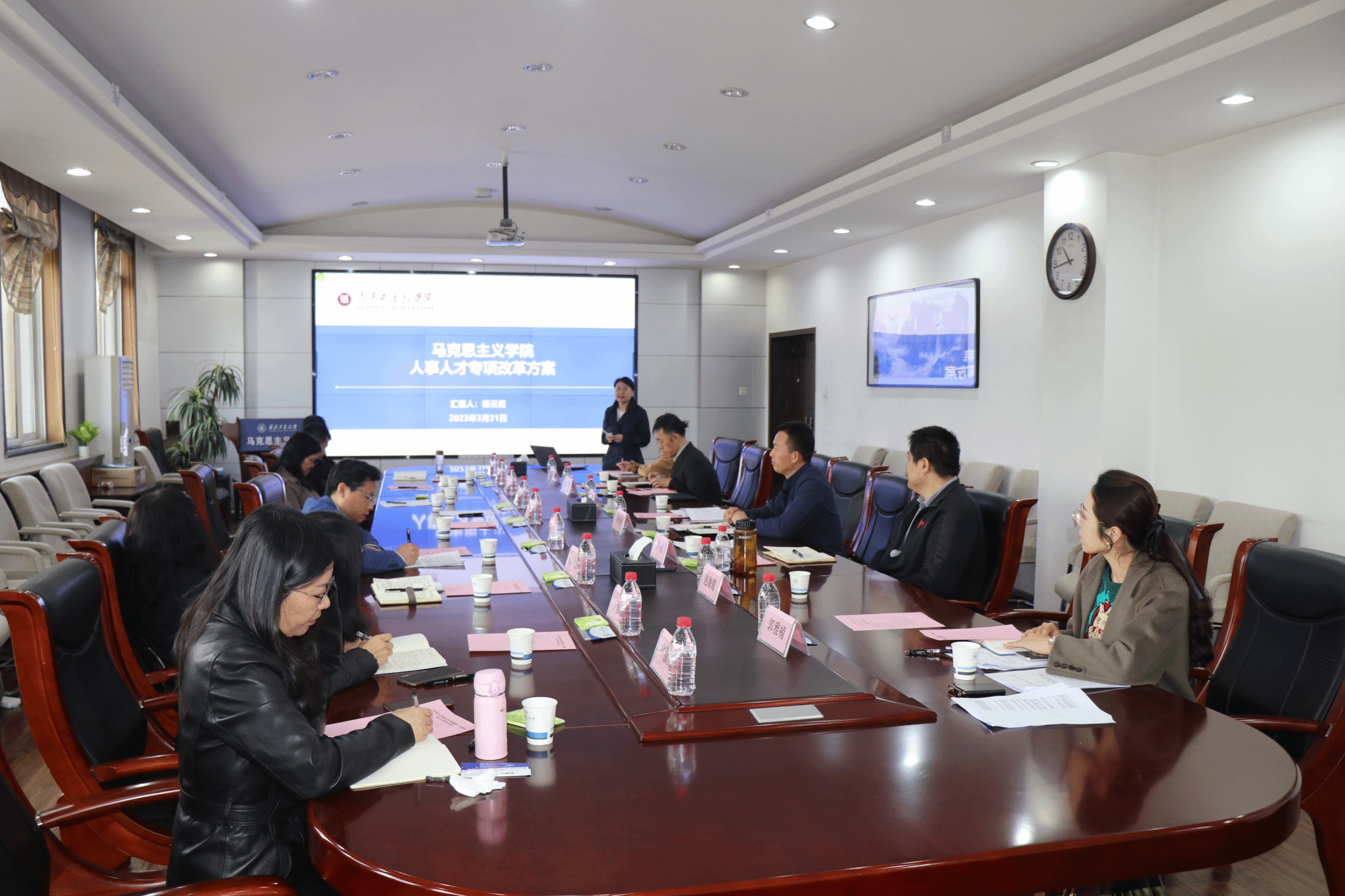3月31日上午,马克思主义学院学习贯彻党的二十大精神暨人才工作研讨会(党政联席会扩大会)在马克思主义学院楼208会议室召开,学校党委教师工作部部长、人事处处长、高层次人才办公室主任唐玉生,人事处规划与评价研究办公室主任张敏乔,学院领导班子全体成员,各系主任、支部书记、教学主任等出席了会议。会议由学院党委副书记(主持工作)蒲传新主持。