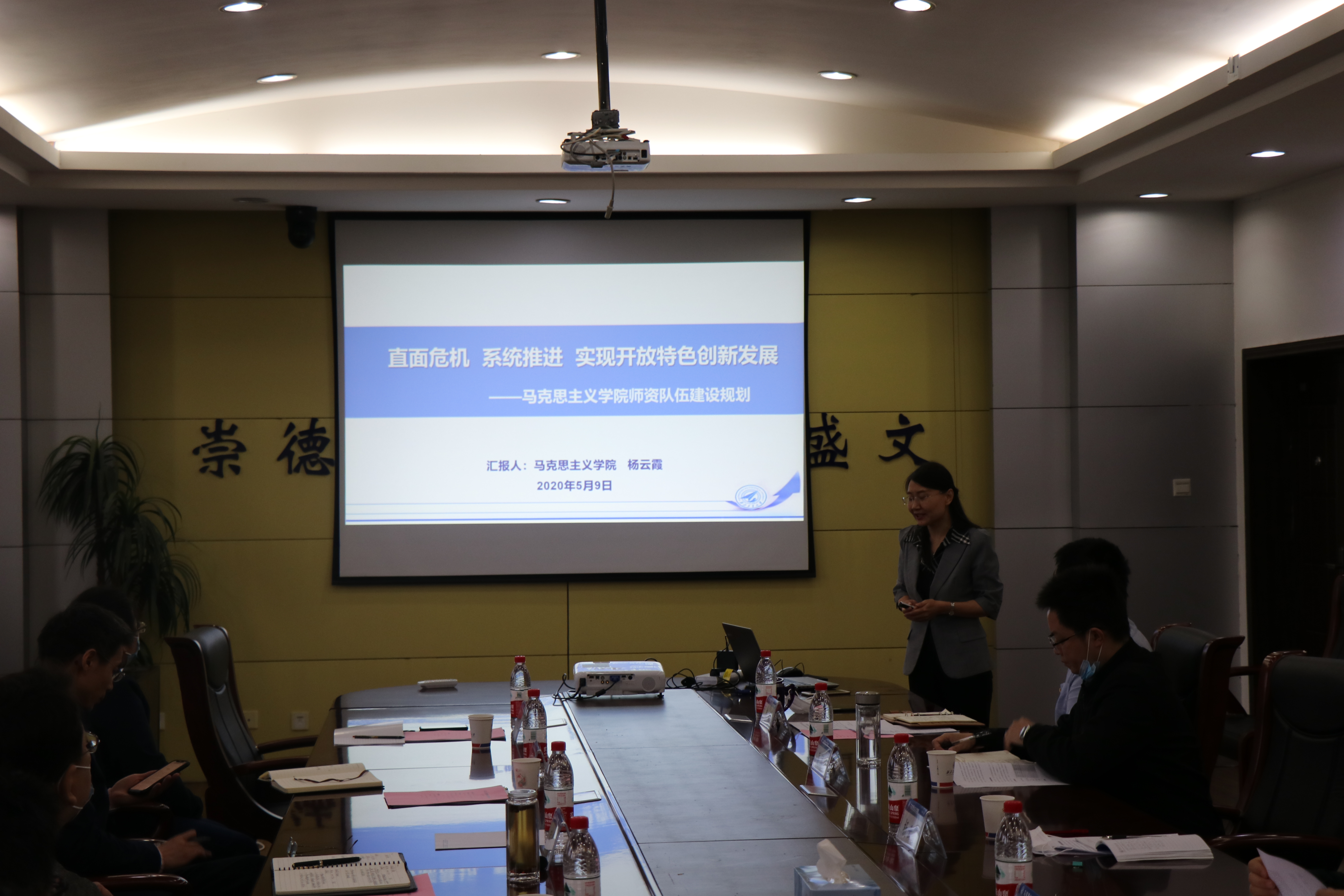 会上,马克思主义学院院长杨云霞围绕学院师资队伍现状,“十四五”学院师资队伍规划,各类学术标准修订中的破“五唯”落实情况,“引育配用”拟采取的主要举措以及相关的条件保障等几个方面做了《直面危机 系统推进实现开放特色创新发展的师资队伍建设规划》的汇报。
