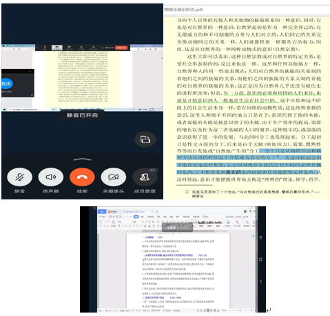 2020年7月6日18:45,西工大“启真明智”第七期读书会在钉钉线上如期举行。此次读书会由我院硕士生黄清涛担任主持,本期读书会以《德意志意识形态》第二节作为研读篇目,因第二节篇幅较长,主持人提出,本次读书会先以第二节前半部分作为讨论重点,第二节剩余部分将在接下来的读书会中继续研读。此次读书会由我院副院长张云龙教授以及数位硕博生共同参与。
