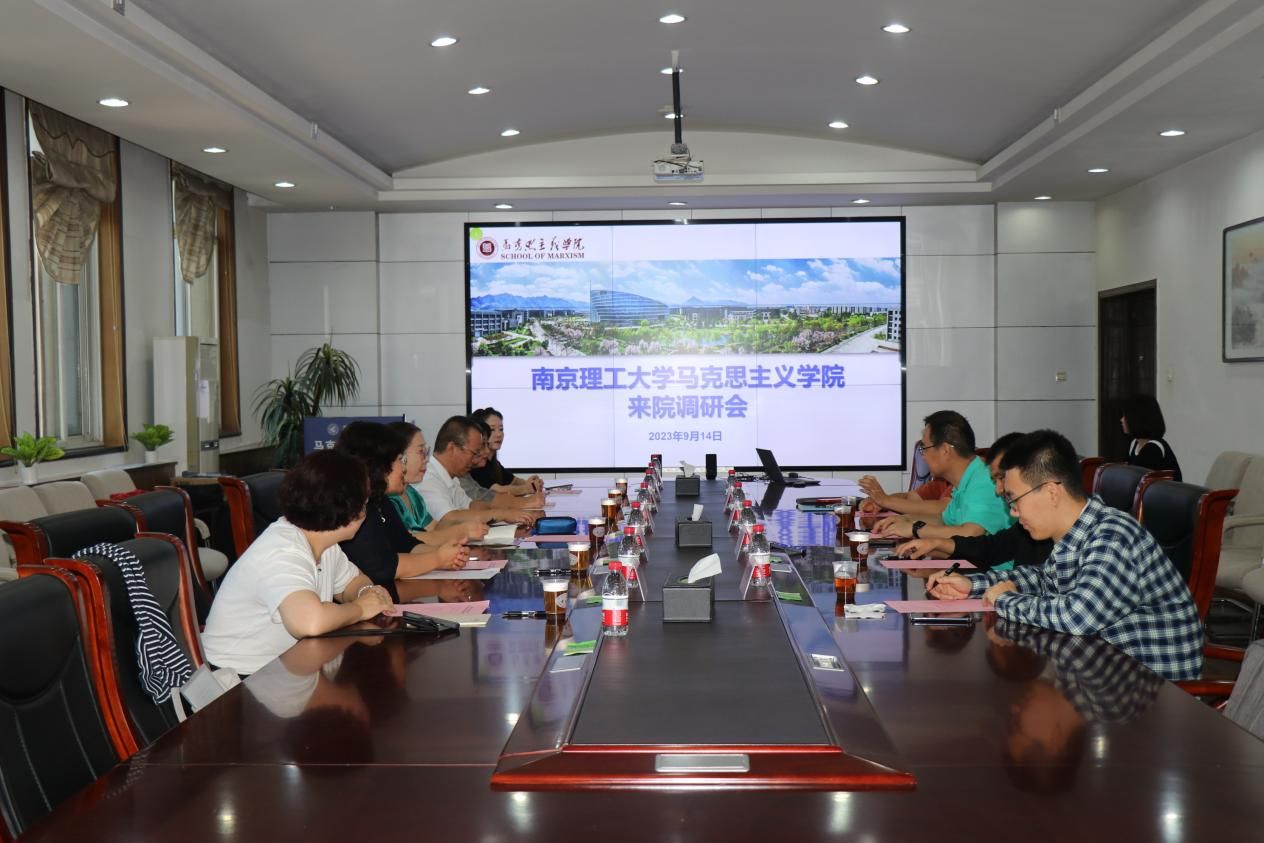 张云龙代表学院对南京理工大学马克思主义学院的来访表示欢迎,并就学院概况、历史沿革、文化建设、研究机构、师资队伍、师资待遇、特色课程建设、研究生培养、教学团队建设、平台建设、马克思主义基本原理学科建设等情况作了详细介绍。他表示,学校党委对马克思主义学院的建设高度重视,对思政课教学、马学科发展、学院师资队伍建设、高层次人才引进、“大思政课”建设上大力支持,学院上下积极落实“集全校之力办好马克思主义学院”的决策部署,并指出学院后续发展思路、建设规划以及思政课专项改革重点任务举措。