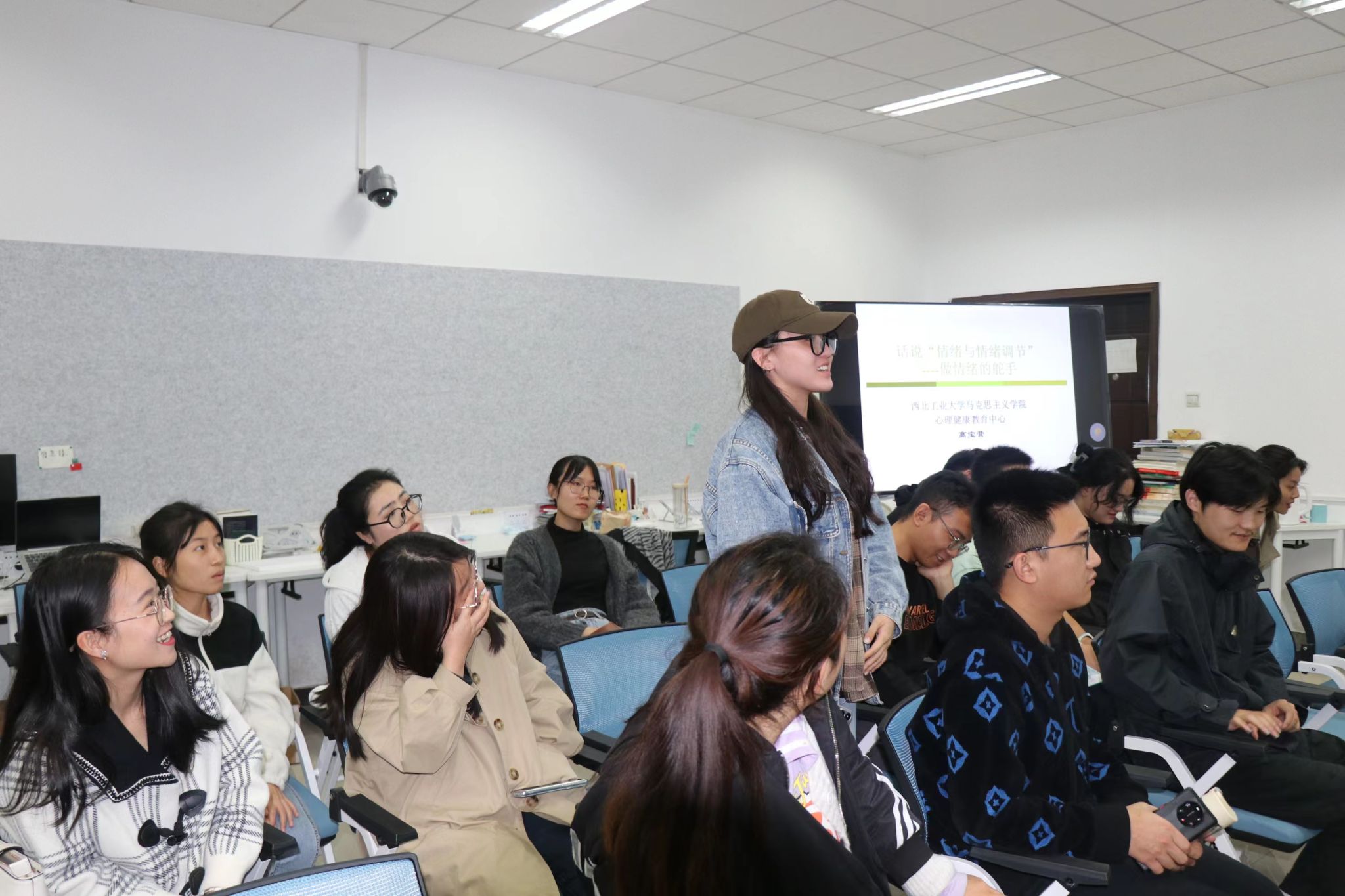 为进一步激发青年师生以饱满热情助推学校“127”目标落地见效,充分发挥“五老”宣讲团作为亲历者、见证者、实践者的优势,10月19日晚七点,西北工业大学马克思主义学院高宝营副教授在学院332智慧教室开展“翱翔关爱讲堂”,为师生作题为《话说“情绪与情绪调节”——做情绪的舵手》心理讲座。讲座由学院团委书记、硕士生辅导员王换主持。