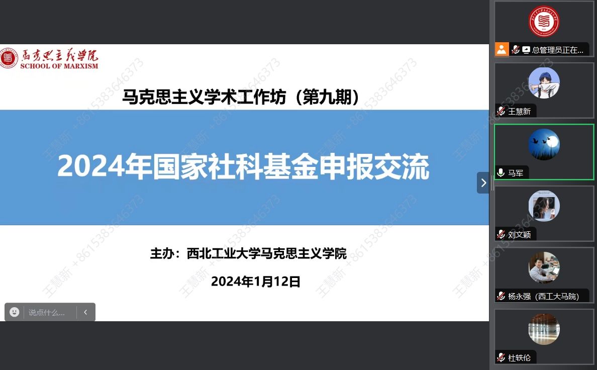 为进一步提升学院国家社科项目申报质量,2024年1月12日晚,马克思主义学院举办2024年国家社科基金申报动员与交流会,交流分享国家社科基金项目申报经验。本次活动邀请了部分2023年国家社科基金项目主持人程圩、聂阳、杨永强、杜轶伦4位教师进行经验分享和交流。我院40余位教师参加活动,交流会由学院院长助理马军主持。