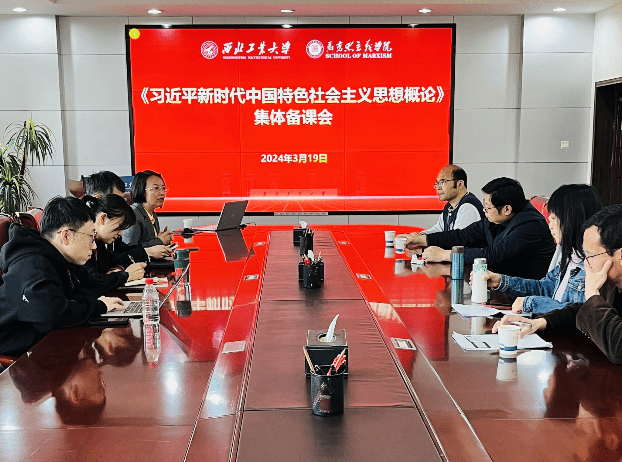 2024年3月19日下午,《习近平新时代中国特色社会主义思想概论》(以下简称《概论》)暨以习近平总书记思政课教师座谈会五周年为主题的集体备课会于长安校区学院楼208会议室举办。马克思主义学院《概论》课教研室主任宁殿霞副教授主持会议,任课教师共同参加本次集体备课活动。