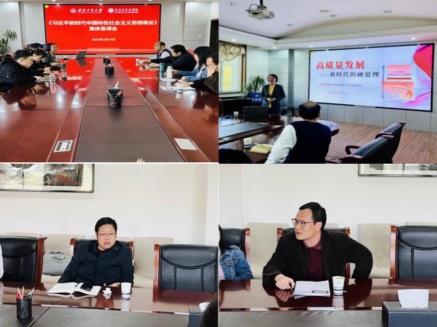 马克思主义中国化研究系于3月18日,通过线上与线下相结合的形式,组织开展集体备课会,进一步深刻学习领会习近平总书记学校思想政治理论课教师座谈会重要讲话,并积极交流学习体会。习近平总书记围绕思政课建设发表的一系列重要论述,为办好思政课指明了方向。与会教师先后发言、纷纷强调要深入贯彻落实习近平总书记关于思政课建设的重要论述和指示批示精神,始终坚持用习近平新时代中国特色社会主义思想铸魂育人,落实“八个相统一”,深化思政课改革创新;坚持为党育人、为国育才,打造《毛泽东思想和中国特色社会主义理论体系概论》课程“为国铸剑”思政课品牌,以“总师育人文化”育时代新人,持续推进思政课教学与学校特色、专业发展、国防军工文化资源的深度融合。随后,2023年陕西省思政课大练兵“教学能手”、学校教师教学创新竞赛一等奖获得者赵波进行了教学观摩展示。最后,教学主任华艳君向全体教师简要介绍了学校本科评估整改工作情况,并做了教学工作安排。