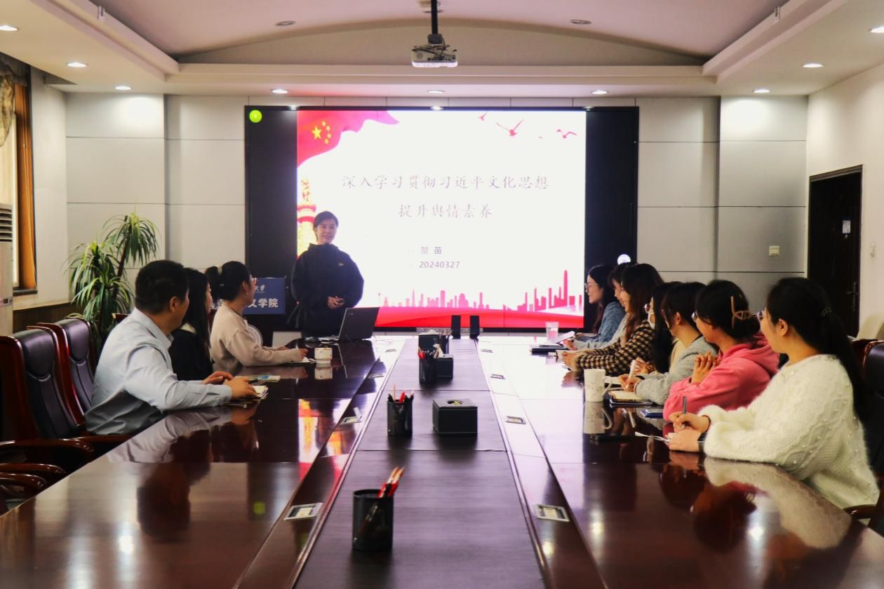 3月27日,西北工业大学马克思主义学院副院长贺苗以《深入学习贯彻习近平文化思想 提升舆情素养》为主题在学院楼208会议室,为学院机关党支部讲授专题党课,会议由机关党支部书记郭雅楠主持。