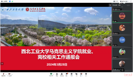 为保证2024届毕业生有序离校,进一步加强精准就业指导,力争实现更充分、更高质量就业,3月28日至29日,西北工业大学马克思主义学院顺利召开2024届毕业生就业、离校相关工作通报会和毕业生座谈会暨心理教育大会。
