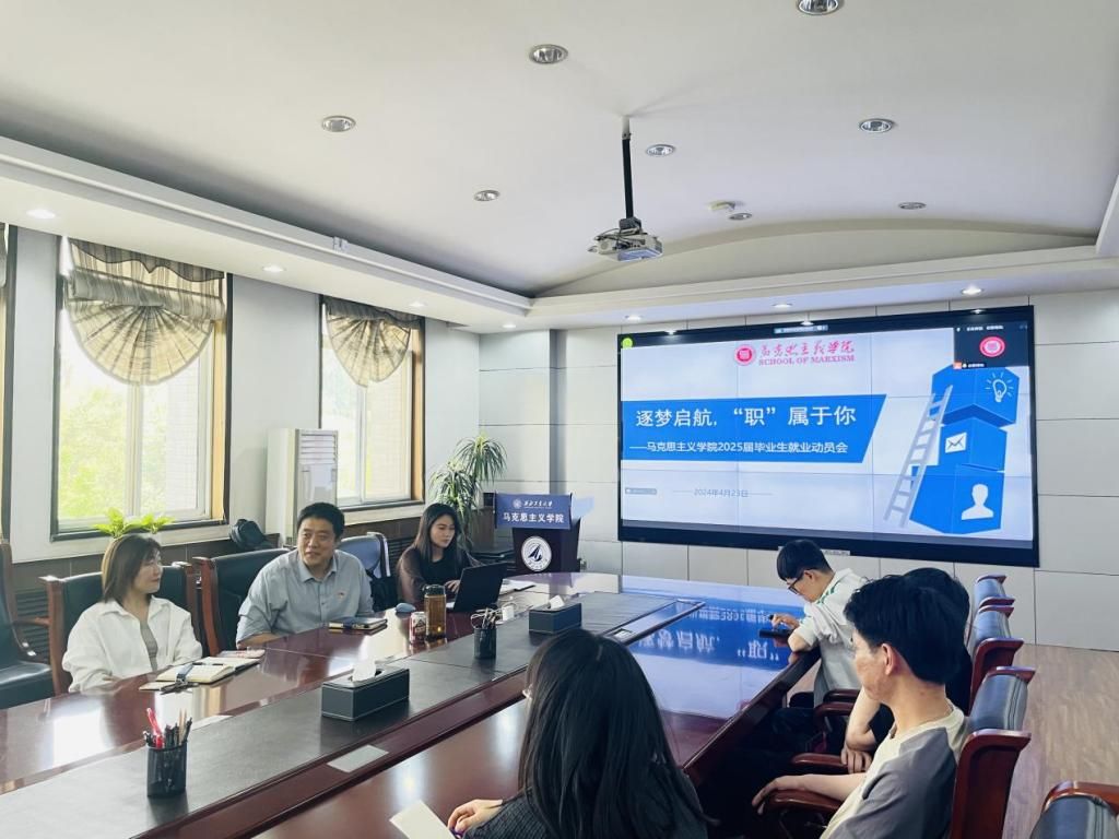 为切实做好2025届毕业生就业指导服务工作,帮助学生明确自己的生涯规划和职业目标,建立正确的择业就业观念,提前做好就业准备,2024年4月23日,西北工业大学马克思主义学院在208会议室召开了以“逐梦启航 ‘职’属于你”为主题的毕业生就业动员会。学院党委副书记李刚、博士生专职辅导员许斯诺、硕士生专职辅导员王换、兼职辅导员单璐玉以及2025届毕业生参加了这次会议。此次动员会线上线下同步进行,由学院党委副书记李刚主持。