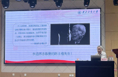 接着讲述了自己与陈士橹院士的交往经历,并且参与撰写了《剑指苍穹:陈士橹传》,鲁老师怀揣着对陈士橹院士高尚的师德师风的敬仰之情,开始向在座的同学们介绍陈士橹院士的生平事迹。陈士橹院士是我国航天事业、航天教育两大领域的开拓者和奠基人之一,从青年时期就确立了航空救国梦并为之努力奋斗。鲁卫平老师笑称自己在撰写传记过程中最初并未加上“之一”一词,陈士橹院士为人谦和、低调,指出自己并不是唯一的奠基人,还有更多的学者在为我国航天事业作贡献。
