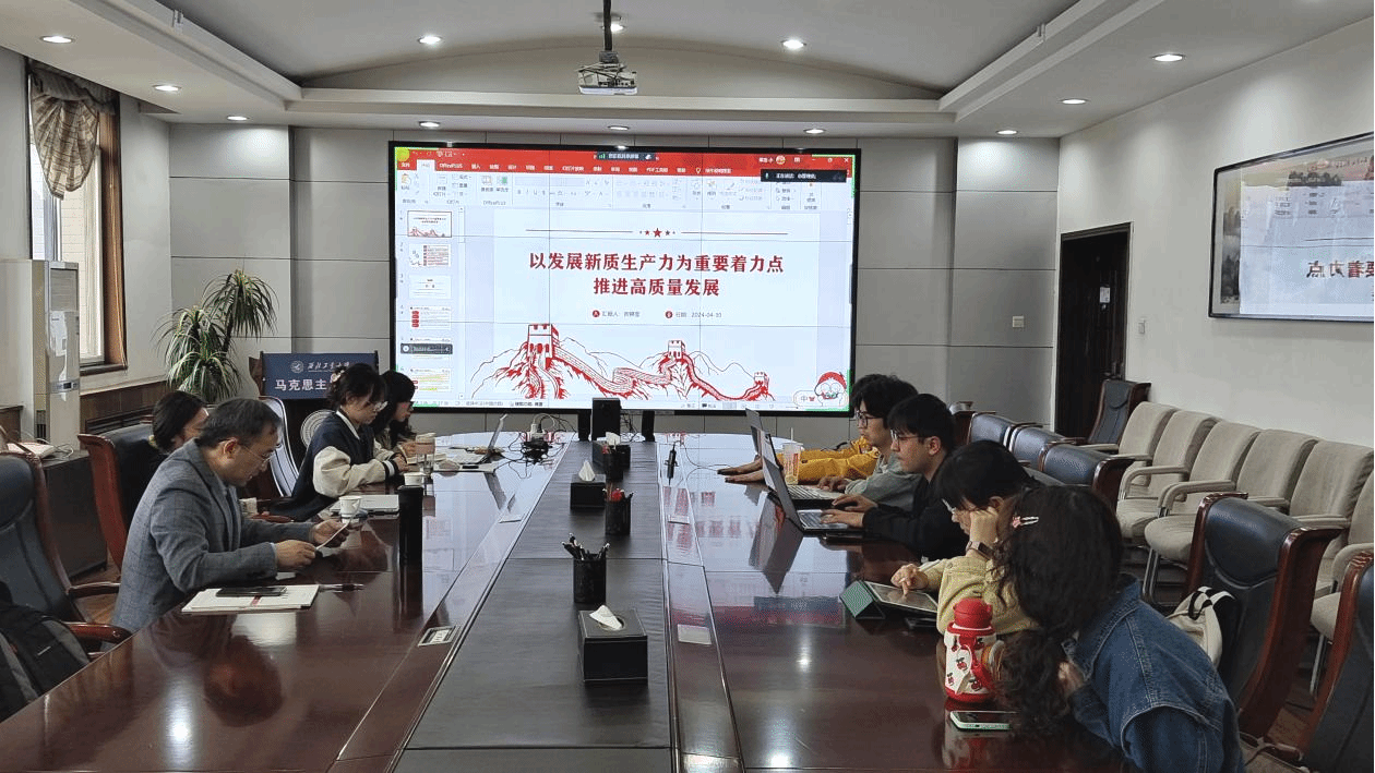 2024年4月30日,西北工业大学马克思主义学院成功举办了第四十六期习近平新时代中国特色社会主义思想学习读书会,旨在深入研讨和学习《习近平在中共中央政治局第十一次集体学习时强调 加快发展新质生产力 扎实推进高质量发展》。此次活动由西北工业大学马克思主义学院鲁杰思政课工作室主办,特别邀请了学院教授刘向阳作为对话教师,博士生郭琼同学担任本次读书会主持人,硕士生张锦莹、硕士生王珮云作为导读人,学院师生齐聚学院楼208,共同学习、交流和探讨。
