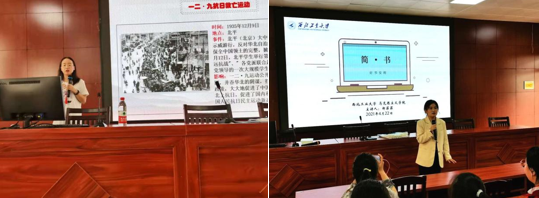 之后,硕士生党支部书记王慧新对送讲党课和团课的情况进行了详细地介绍。为了让青少年在学习中厚植爱党爱国情怀,传承革命红色基因,马克思主义学院党史理论宣讲团为民族中学提供线上党史送讲活动,党史送讲共计10课时。