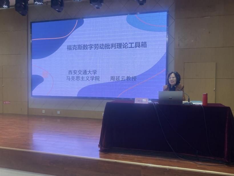 为深入学习贯彻习近平新时代中国特色社会主义思想,引导师生深刻把握信息时代马克思政治经济学的应用场域,提升学术前沿洞察力和理论创新力,2024年5月15日上午,西安交通大学周延云教授做客我校翱翔灵犀学术殿堂,在马克思主义学院207报告厅带来一场题为《福克斯数字劳动批判理论工具箱》的讲座。本次讲座由党委学生工作部主办、马克思主义学院承办,马克思主义学院宁殿霞副教授主持。会议伊始,宁殿霞隆重介绍了周延云教授的学术成就,高度评价了周教授在国外马克思主义研究特别是数字劳动领域的突出理论贡献。