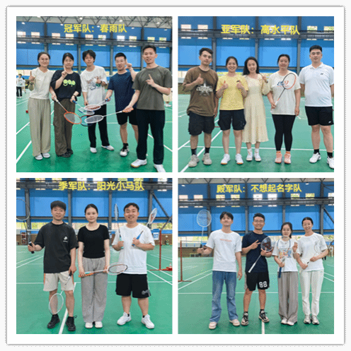 历经激烈比拼,本次“春羽杯”师生羽毛球团体锦标赛的冠、亚、季军得主已揭晓。位居榜首的是春雨队,紧随其后的是高水平队,季军则被阳光小马队收入囊中。此次羽毛球比赛的顺利进行,不仅为我院师生创造了展示才华、互动交流的机会,也拉近了师生间的友谊,增强了团队凝聚力。参赛者在比赛中强身健体,尽享竞技之乐,为校园体育文化注入了新的活力。