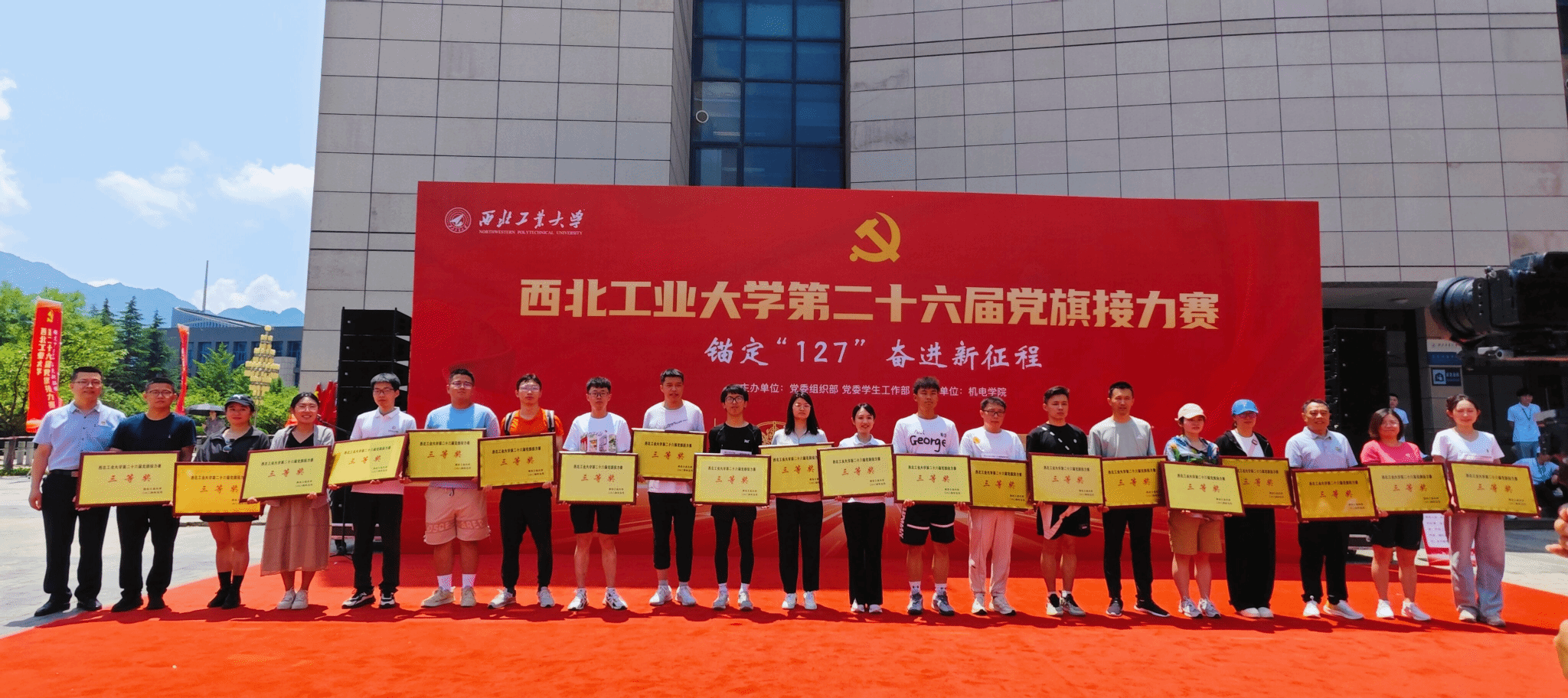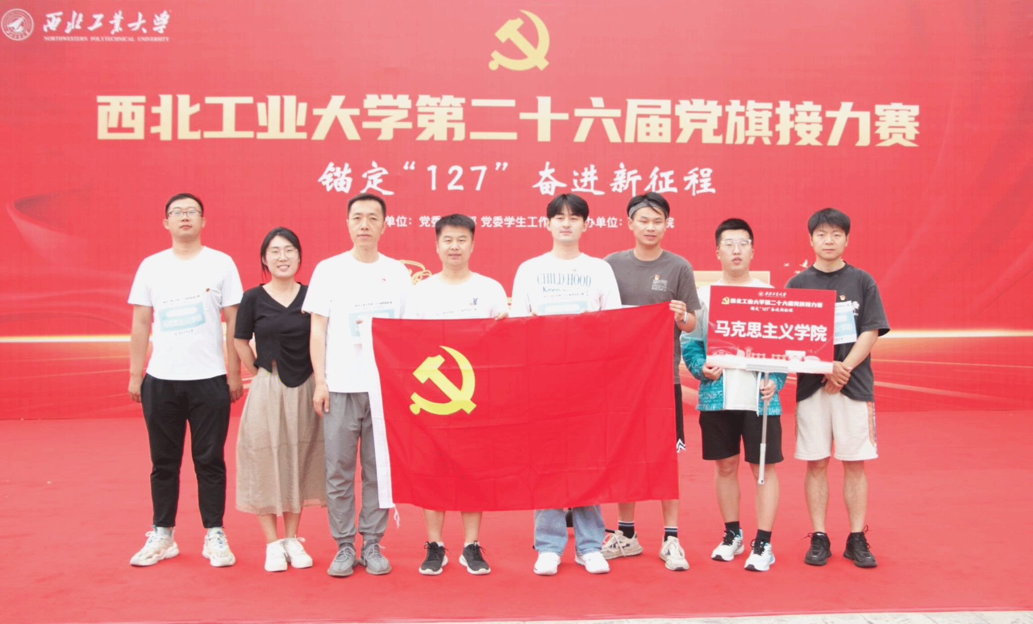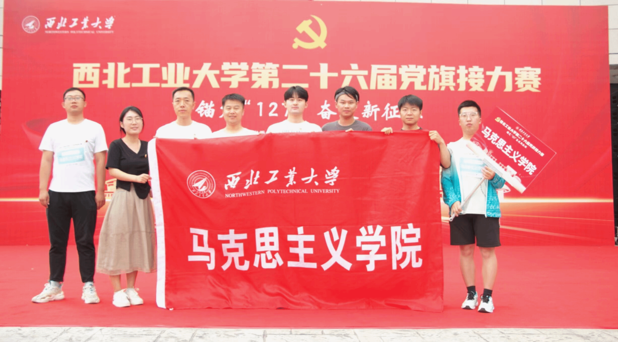 为深入开展学习贯彻习近平新时代中国特色社会主义思想主题教育,以飞扬的旗帜激发广大师生砥砺前行,凝聚青春力量,昭示伟大梦想。5月26日上午10时,西北工业大学第二十六届党旗接力赛在长安校区隆重举行,本次活动由学校党委组织部和党委学生工作部主办,机电学院承办。由马克思主义学院院长助理马军老师领队、杨永强老师和党员研究生代表共同组成队伍参加比赛。