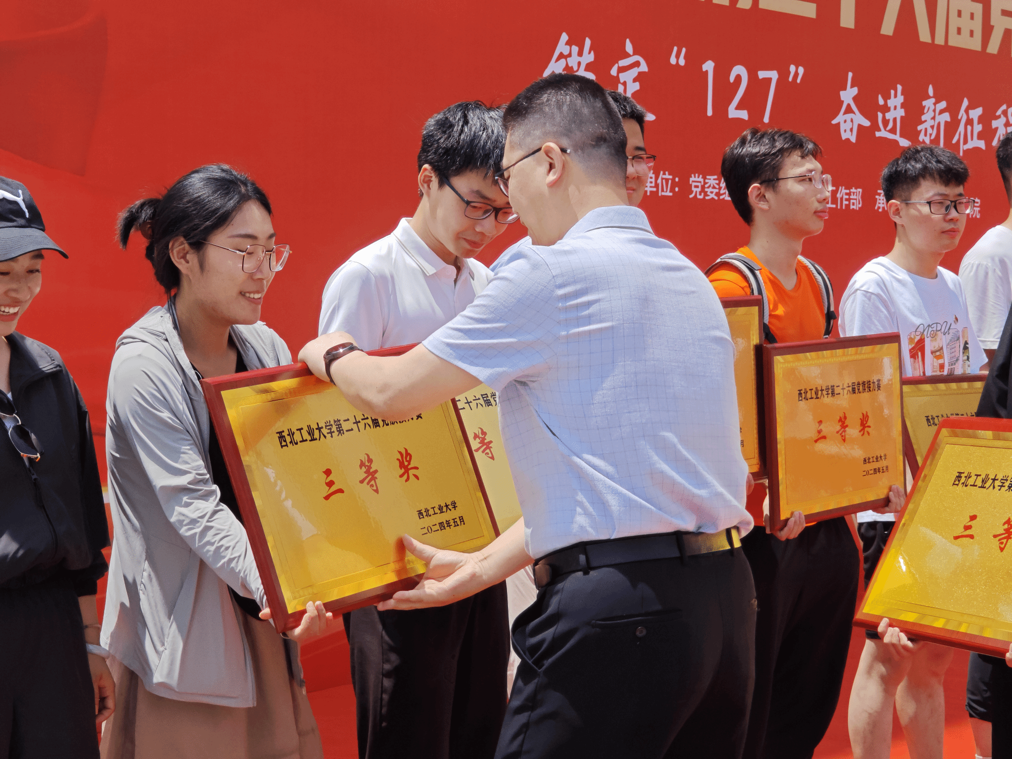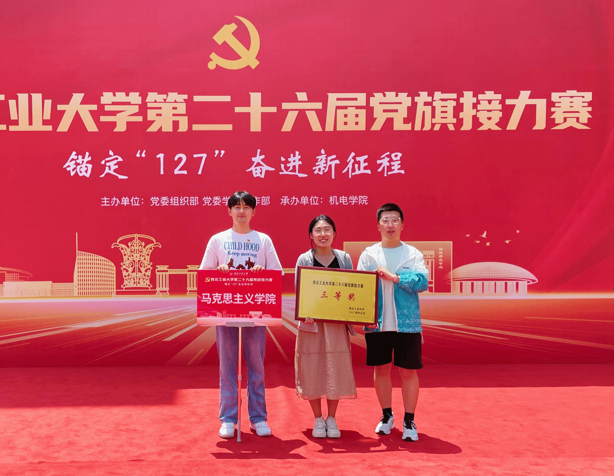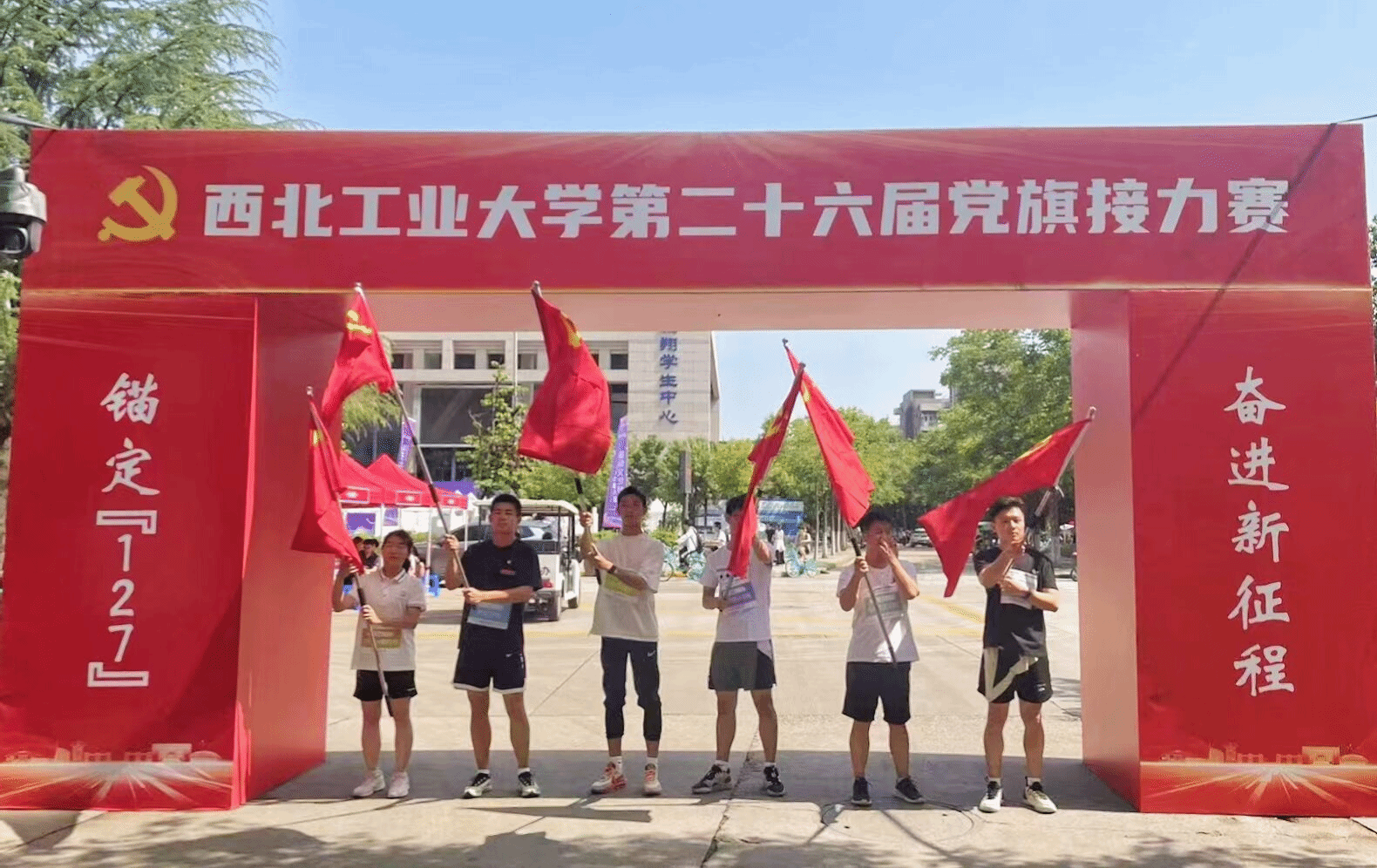 为深入开展学习贯彻习近平新时代中国特色社会主义思想主题教育,以飞扬的旗帜激发广大师生砥砺前行,凝聚青春力量,昭示伟大梦想。5月26日上午10时,西北工业大学第二十六届党旗接力赛在长安校区隆重举行,本次活动由学校党委组织部和党委学生工作部主办,机电学院承办。由马克思主义学院院长助理马军老师领队、杨永强老师和党员研究生代表共同组成队伍参加比赛。