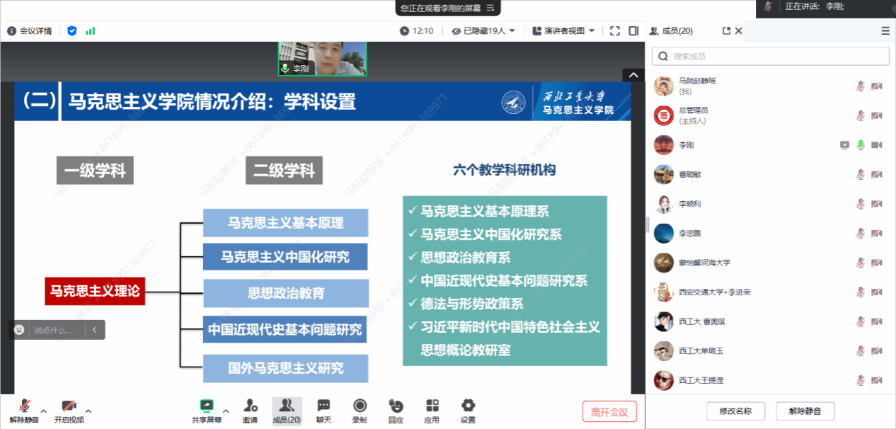 2024年6月15日下午,马克思主义学院组织线上召开西北工业大学第十二届翱翔青年学者论坛马克思主义学院分论坛。会议由学院党委副书记李刚主持,学院副院长张云龙、学术委员会专家、学院师生以及来自全国各地的6名青年学者线上参加了此次分论坛。
