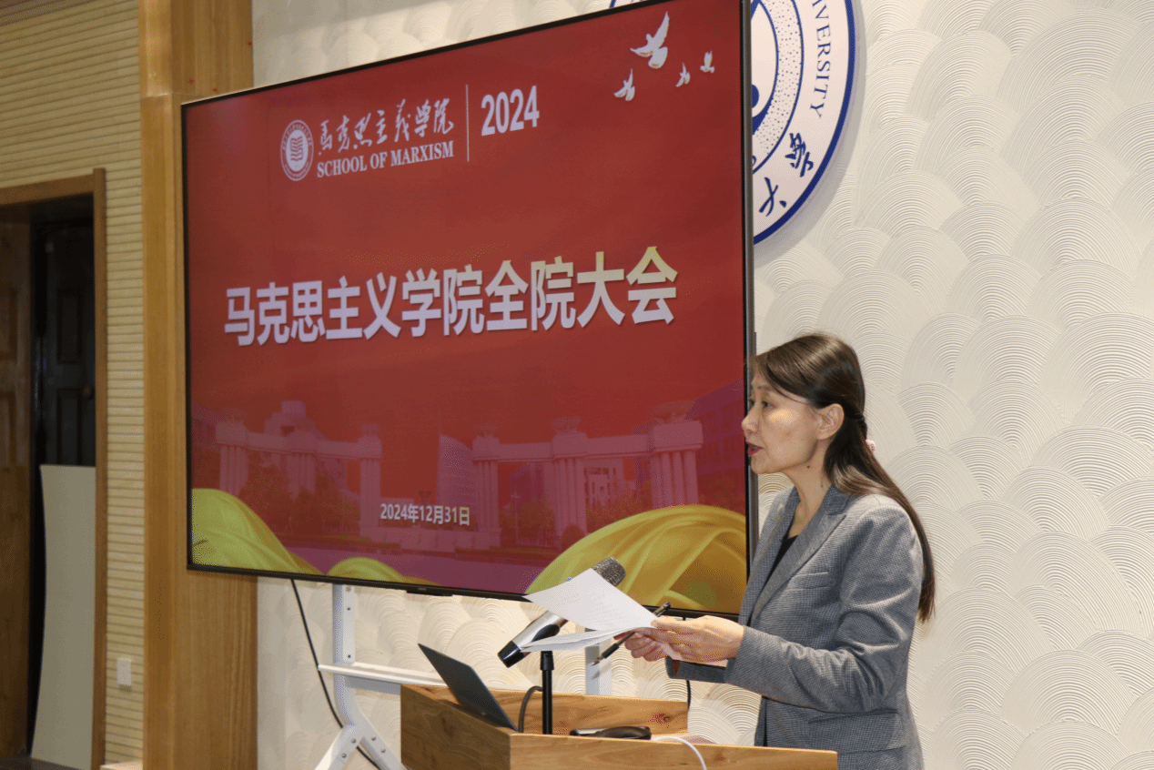 12月31日上午,马克思主义学院在友谊校区校友之家召开2024年终全院大会,学院全体教职工及学生代表参加会议。会议由学院党委书记王彦革主持。