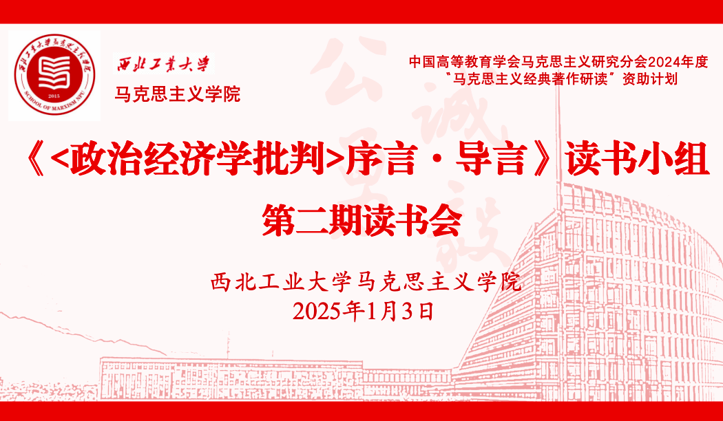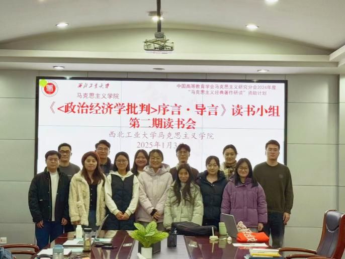 2025年1月3日下午,西北工业大学“《政治经济学批判》序言·导言”读书小组于马克思主义学院208会议室举办了第二期读书交流活动。指导老师聂阳、齐承水,读书小组全体成员参加,会议由王心彤同学主持。