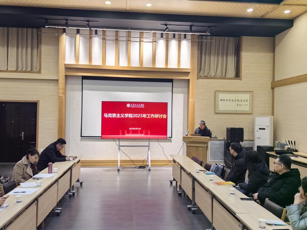 2月19日,马克思主义学院召开2025年工作研讨会,深入学习贯彻学校寒假务虚会及新学期干部会精神,全面部署新一年重点工作任务。学院领导班子成员、各系主任及教工党支部书记参加会议。会议由学院党委书记王彦革主持。