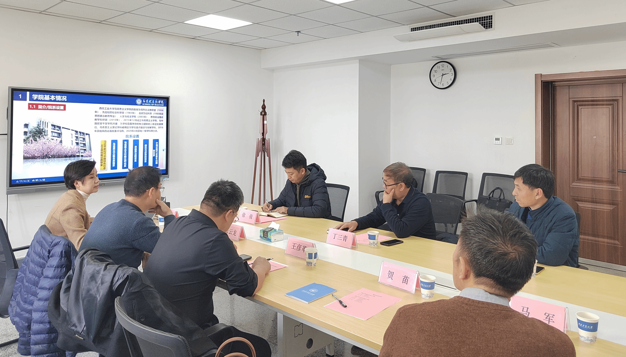 会议开始,双方对参会人员作了简要介绍,并一同观看《西北工业大学宣传片》和《西北工业大学马克思主义学院宣传片》。