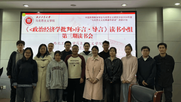 2025年3月20日下午,西北工业大学“《政治经济学批判》序言·导言”读书小组于马克思主义学院208会议室举办了第三期读书交流活动。指导老师聂阳、齐承水,读书小组全体成员参加,会议由张宇同学主持。本次活动以“原原本本读原著,扎扎实实悟原理”为宗旨,通过领读、提问、研讨等环节,引导师生深入理解马克思主义经典著作的理论精髓和时代价值。