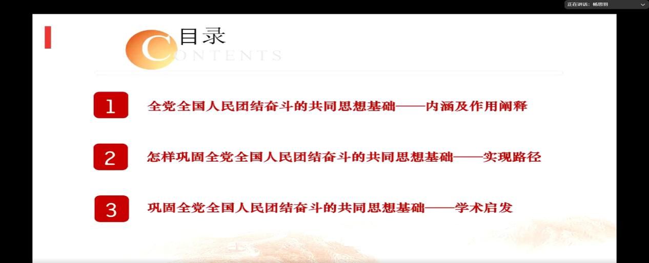 2025年4月19日,中国高等教育学会马克思主义研究分会2024年度“马克思主义经典著作研读”资助计划支持小组——西北工业大学马克思主义学院习近平新时代中国特色社会主义思想学习读书小组第五十七期活动以《怎样巩固全党全国人民团结奋斗的共同思想基础》为主题进行学习研讨。本次读书会由马克思主义学院鲁杰思政课工作室主办,特别邀请了西北大学李建森教授作为对话教师,西北工业大学马克思主义学院硕士生李红霞同学担任本次读书会主持人,中国高等教育学会马克思主义研究分会督导组成员尉迟庆文同学共同参加,读书会通过线上交流的形式,为广大师生们提供了一个广泛交流、智慧碰撞、思想启迪的互动学习平台。