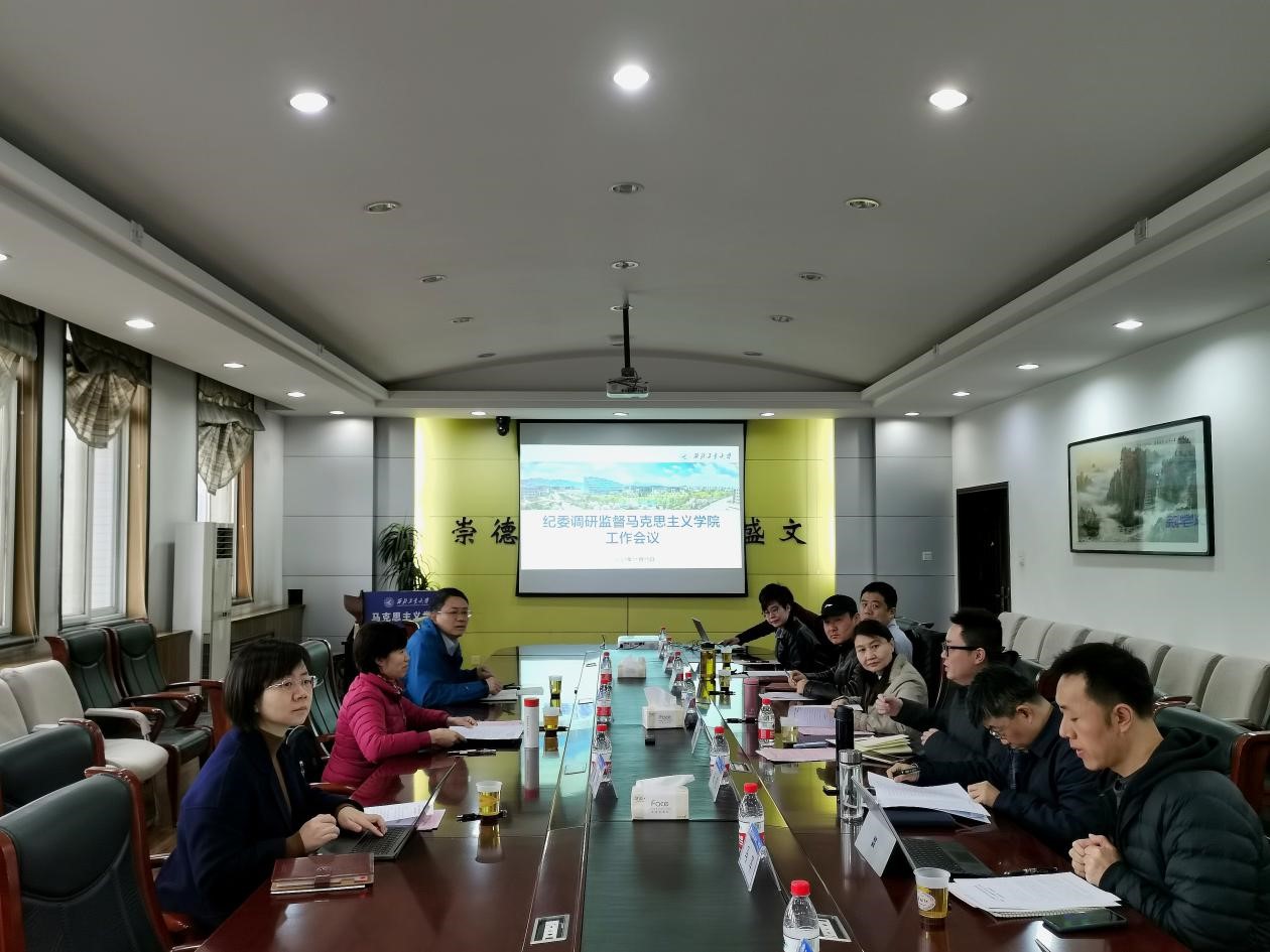 11月15日上午,校党委副书记、纪委书记张海兰,纪委副书记、监察处处长兼党委巡视工作办公室主任贾丙雷,纪委办纪检监察员肖静一行到马克思主义学院就中央巡视整改工作和新时代马克思主义学院建设召开调研监督工作会议。马克思主义学院领导班子成员、办公室主任参加会议。