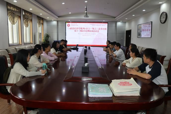 5月27日下午,《〈政治经济学批判〉序言·导言》读书小组在马克思主义学院208会议室成功举办了第十三期读书会活动暨结项总结会。《〈政治经济学批判〉序言·导言》读书小组自成立以来,围绕“马克思主义政治经济学”这一核心主题,开展了十三次丰富多彩的读书与实践活动。小组成员以马克思主义经典著作研读活动为主,穿插进行了实践研学、跨校共读等活动,将理论学习与实践行动紧密结合,取得了显著成果。聂阳、齐承水老师和小组成员共同参与本次活动,活动由小组组长张宇主持。