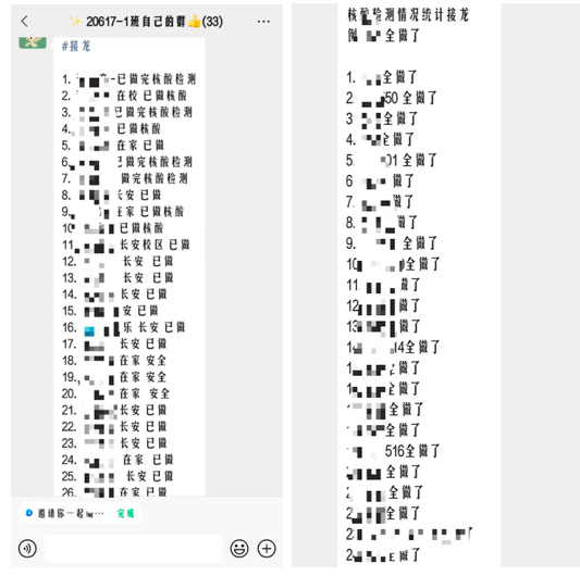 疫情发生以来,马克思主义学院高度重视疫情防控工作,及时摸排全体学生的情况,通过辅导员和班长的反馈,及时上报核酸检测情况,同学们积极在群内汇报自己的情况,为疫情防控工作开展筑牢基础。