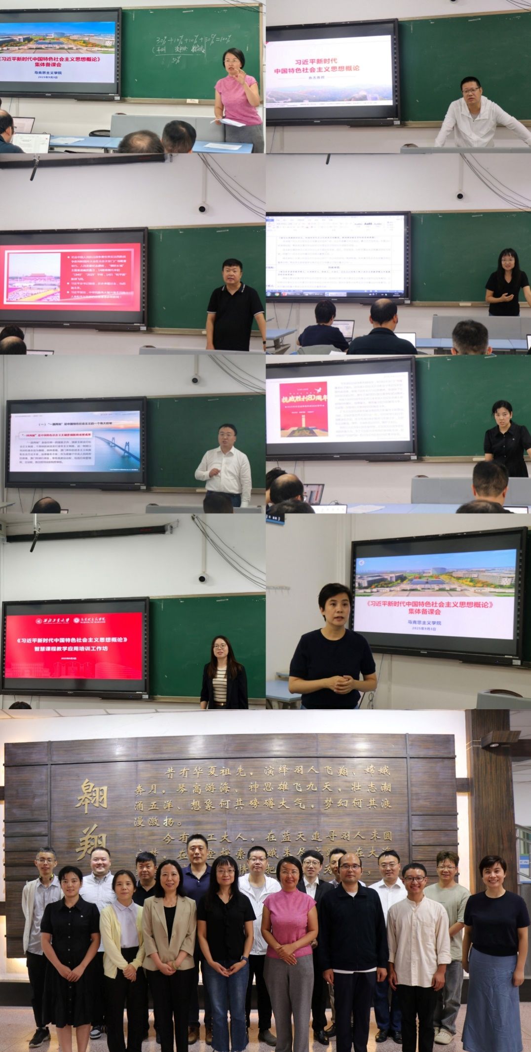 马克思主义学院组织思政课教师第一时间开展集体备课,学习习近平总书记重要讲话精神,将抗战历史和西工大故事融入思政课教学,各位教师从党的十八大以来中国人民在习近平新时代中国特色社会主义思想引领下取得的伟大实践入手,结合阅兵进行教学示范,结合中国人民抗日战争史、英烈事迹和国立西北工学院校史故事,深入探讨了如何利用课堂教学、实践教学、读书会、主题活动和数字化教学等形式,有效激发学生的爱国主义情怀,树立民族自尊心与自信心。