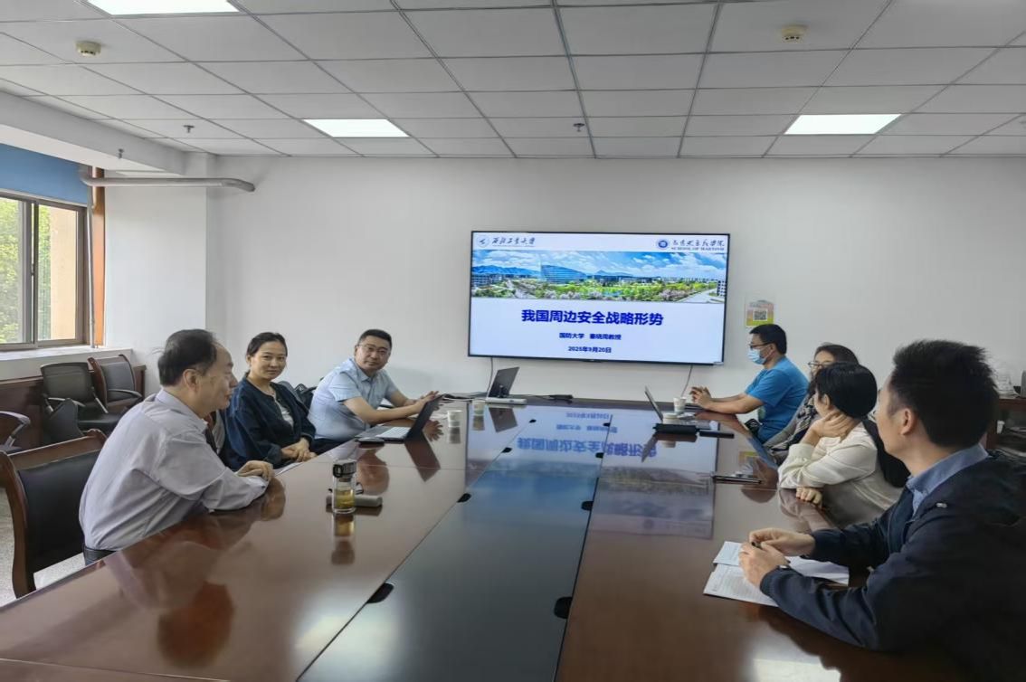 集体备课活动分为两个环节。在第一个环节,秦晓周教授分析了当前我国周边安全战略形势的变化,强调了新征程上以中国式现代化全面推进强国建设、民族复兴伟业过程中周边安全的重要性,并对新时代我国周边政策进行了深入分析和解读。在第二个环节,各位老师分别结合自己教学内容,从周边安全涉及的热点问题、大国关系、海洋权益保护、地缘政治、国防能力建设等方面,和秦晓周教授进行了充分的讨论,并就下一步如何围绕周边安全战略开展研究进而丰富思政课教学进行了交流。