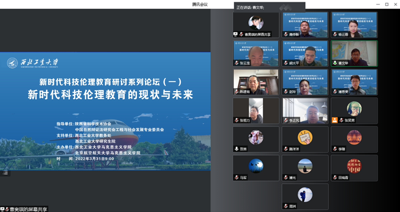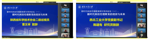 为深入贯彻落实中共中央办公厅、国务院办公厅印发的《关于加强科技伦理治理的意见》精神,教育师生树立正确的科技伦理意识、遵守科技伦理要求,3月31日上午,西北工业大学举办了以“新时代科技伦理教育的现状与未来”为主题的“新时代科技伦理教育研讨系列论坛”首场论坛。本次论坛由西北工业大学马克思主义学院和北京航空航天大学马克思主义学院共同主办,受到了陕西省科学技术协会,中国自然辩证法研究会工程与社会发展专业委员会,西北工业大学教务处、研究生院等多方指导支持。陕西省科协二级巡视员曹文举、西北工业大学党委副书记陈建有出席论坛并致辞,与会专家学者围绕“新时代科技伦理教育的现状与未来”这一研讨主题进行相关主题报告,来自各高校、科研院所与师生300余人参加此次线上会议。本次会议由西北工业大学马院院长杨云霞教授主持。
