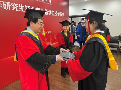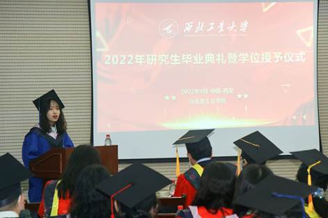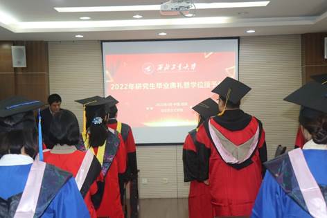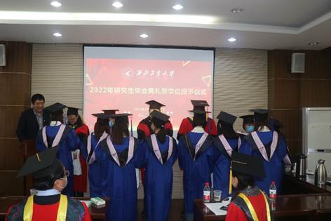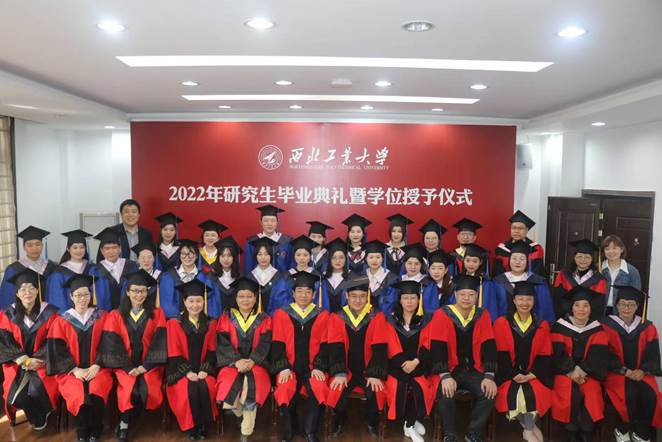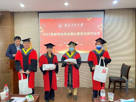 之后,师生共同合唱西北工业大学校歌,学位授予仪式正式开始,黄维院士为毕业生们颁发毕业证和学位证,杨云霞院长为毕业生拨穗,并进行了合影留念。