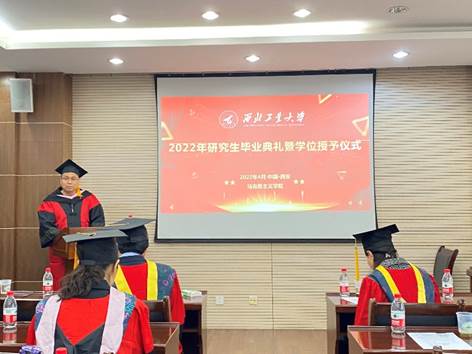 2022年4月2日上午,马克思主义学院2022年研究生毕业典礼暨学位授予仪式在学院305室隆重举行。中国科学院院士、研究生导师黄维,马克思主义学院院长杨云霞、副院长张云龙和导师们与2022届毕业生齐聚一堂,共贺毕业。本次毕业典礼由马克思主义学院党委副书记李刚主持。