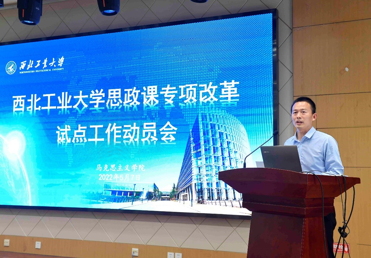为深入学习贯彻习近平新时代中国特色社会主义思想和党的十九大精神,落实习近平总书记关于思政课建设的重要指示批示,特别是学习领会习近平总书记4月25日在中国人民大学考察时的讲话精神,根据《关于深化新时代学校思想政治理论课改革创新的若干意见》的要求,在学校党委的领导下,2022年5月7日,马克思主义学院思政课专项改革试点工作动员会在学院207报告厅举行,校党委副书记陈建有、全体专职思政课教师参加会议,马院院长杨云霞主持动员会。
