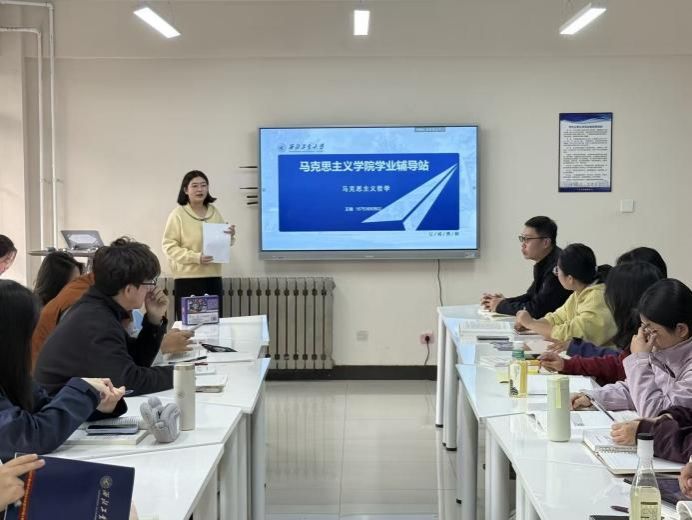 为加强学业学风建设,发挥朋辈榜样引领作用,马克思主义学院于11月13日在一站式学生社区举办了第一期“学业辅导站”。本次“学业辅导站”特邀我院2025级硕士生王楠担任“主讲小导师”,为全体本科新生针对《马克思主义哲学》开展学业辅导。本次活动由本科生辅导员董润主持。