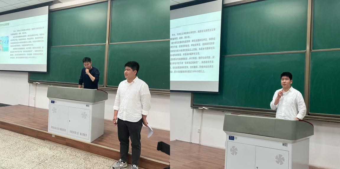 为探索思政课堂教学新模式,充分发挥思政课作为“第一课堂”的主渠道作用,增强“四史”系列课程教学的亲和力、说服力和感染力,更好满足学生的成长需求,5月17日19:00,《社会主义发展史》课程负责人山磊助理教授邀请2022届研究生优秀毕业生李水走进长安校区教西D205的思政讲台,以“过来人”身份与学生分享成长感悟、学习心得。李水,马克思主义学院博士生。硕士研究生期间先后获得研究生国家奖学金、陕西省优秀学生干部、校优秀毕业生、学业奖学金、连续两年获得校优秀研究生等20余项校级及以上奖励。始终坚持理论与实践相结合,多次策划、组织社会实践,并获得全国大学生千校千项“青年基层观察员、陕西省优秀实践团队、校社会实践特等奖等荣誉。在校期间,积极参加各类志愿者活动,先后获得十四届全国运动会“模范志愿者”“优秀志愿者”等荣誉。