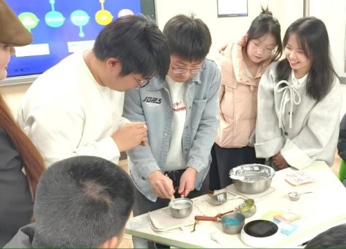 在活动第二阶段,化学与化工学院庹渝洲以“香凝三航梦,蜡映国家月”为主题分享蜡在历史上的广泛应用,细致讲解蜡烛制作的化学原理与制蜡工艺流程,并指导同学们开展香薰蜡烛创意作品制作。创意作品制作环节展现了化工专业的学科特色,将专业知识转化为生动有趣的实践体验,搭建起理论与实践沟通的桥梁,让学生在动手实践中感受知识应用的魅力。