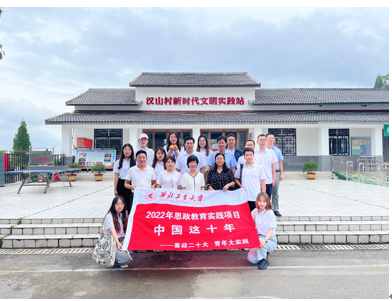 习近平总书记在中国人民大学与师生会谈时讲到:“希望广大青年用脚步丈量祖国大地,用眼睛发现中国精神,用耳朵倾听人民呼声,用内心感应时代脉搏,把对祖国血浓于水、与人民同呼吸共命运的情感贯穿学业全过程、融汇在事业追求中。”听革命故事,悟革命精神;阅汉山村史,叹十年巨变。站在新的历史起点上,青年们应该铭记党的光辉历史,传承红色基因,接好历史的接力棒,沿着红色足迹重走信仰之路,不忘初心、牢记使命,为文化赋能乡村振兴贡献力量,为实现中华民族伟大复兴的梦想砥砺前行。