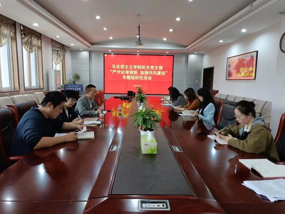 2022年9月21日,马克思主义学院机关党支部全体党员在学院楼208会议室召开“严守纪律规矩 加强作风建设”专题组织生活会。学院副院长贺苗作为督导领导出席了此次专题组织生活会。