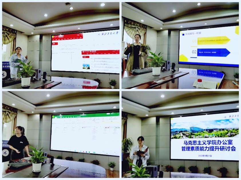 为提高学院管理人员职业素养和业务能力,9月21日,马克思主义学院办公室在学院楼208会议室召开办公室管理素质能力提升研讨会,学院党委副书记(主持工作)蒲传新,党委副书记李刚,办公室主任郭雅楠以及学院机关各口秘书参加了研讨会。会议由郭雅楠主持。