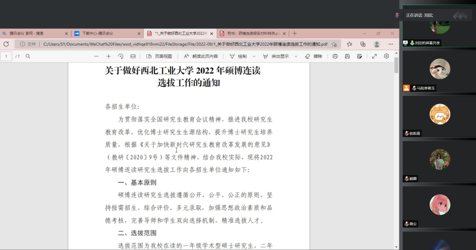 第一位分享嘉宾刘欣以自身申博的经历切入,详细解读了西北工业大学硕博连读相关文件的具体要求与注意事项,并指出平时要加强学术素养的训练,提升学术研究的能力。