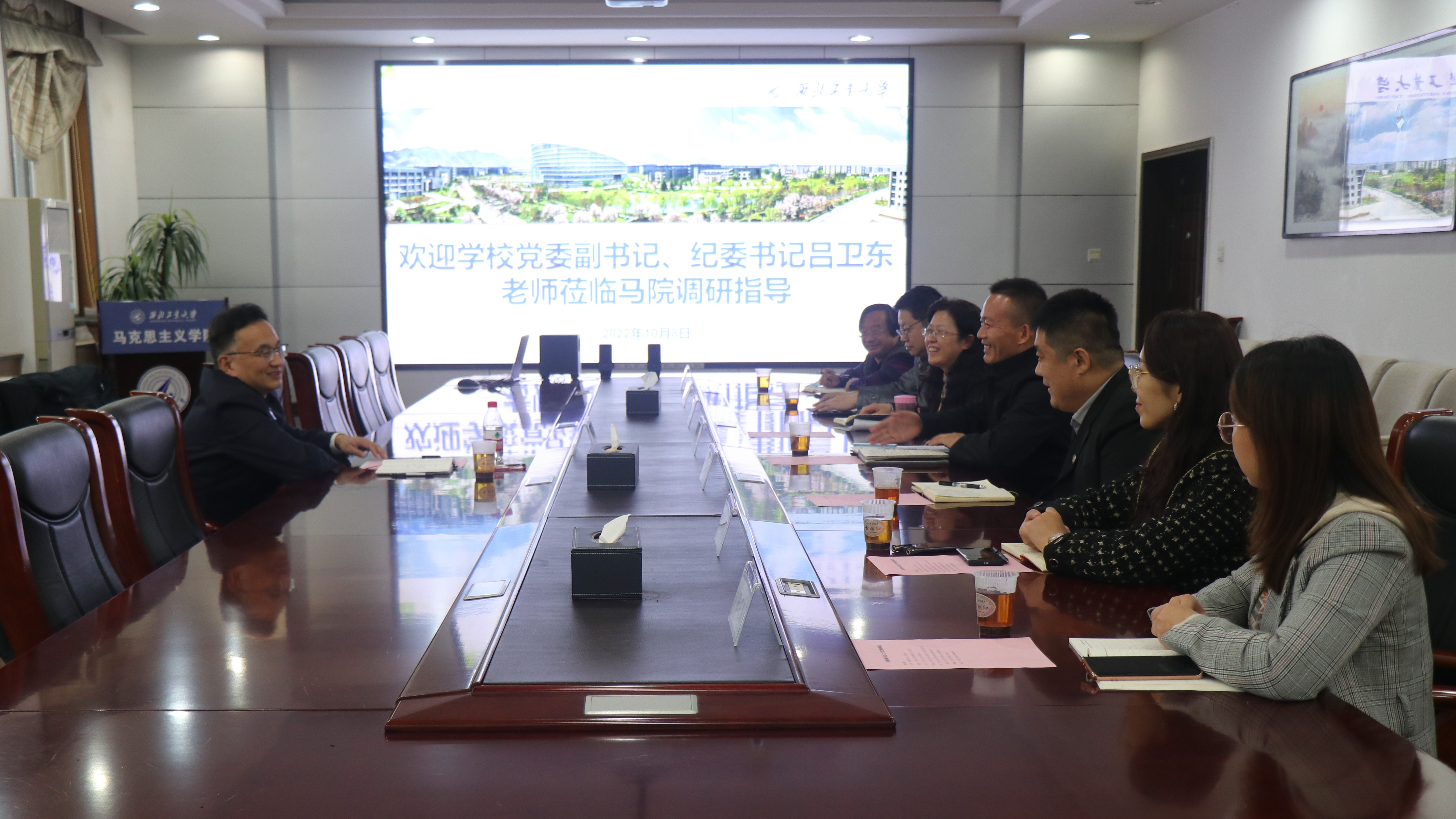 在听取汇报后,吕卫东充分肯定近年来在学校党委的坚强领导下,马克思主义学院紧紧围绕人才培养目标,在各个方面所取得的成绩。他指出,我校马克思主义学院独立建制的时间并不长,在学校党委“集全校之力办好马院”的安排部署下,全院师生的共同努力下,接连在重大科研项目申报、省重点马院、学科建设、科研成果和人才队伍建设等方面取得了重要突破,学院驶上了高质量发展的“快车道”。