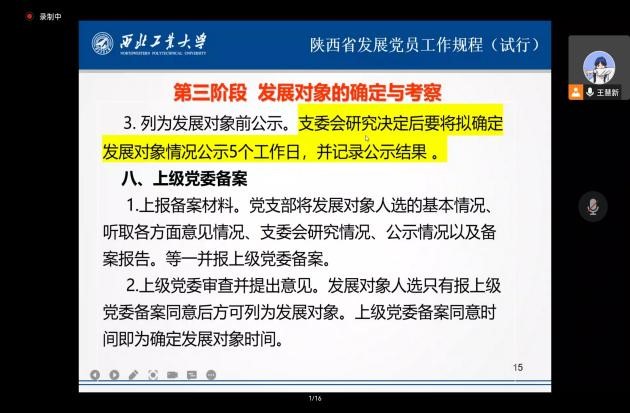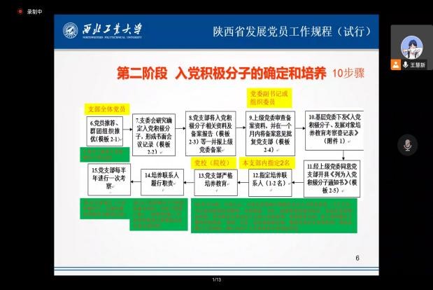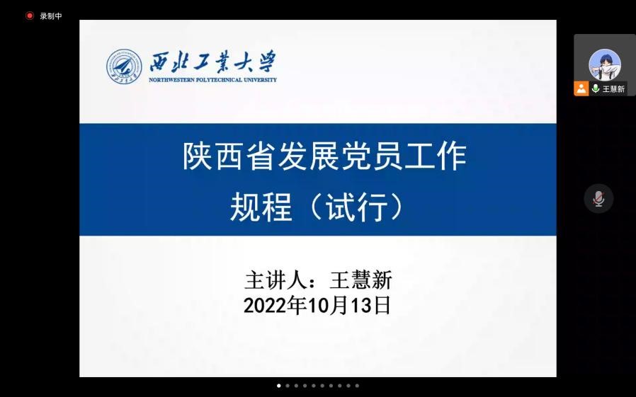 为进一步增强党课培训的针对性与实效性,努力培养理想信念坚定、综合素质优良的党员队伍后备力量。2022年10月13日上午,在腾讯会议上开展了主题为《陕西省发展党员工作规程(试行)》的党课培训,本次培训由马克思主义学院马克思主义基本原理系硕士生党支部书记王慧新主讲,马克思主义学院、民航学院160余名入党积极分子、发展对象参加本次党课培训,旨在通过理论学习来加深入党积极分子、发展对象对党员发展流程的认识,形成正确的入党动机。