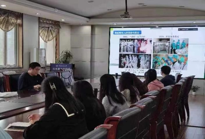 首先,李刚老师从青年的使命与责任切入,结合马克思主义学院研究生培养目标,指出学院学生党员在疫情防控、党史学习教育、志愿服务中展现出的模范先锋作用,正是彰显了青年马克思主义者的知行合一与责任担当。同时,李刚老师勉励大家,作为马克思主义理论学科的学生要有政治敏锐性和时代责任感,坚定理想信念,夯实理论基础,将个人抱负与时代、社会的发展紧密结合起来,将个人命运与国家、民族的命运紧密结合起来。