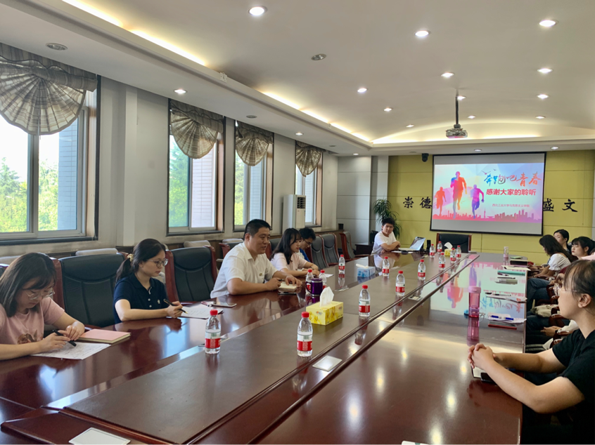 On September 7, 2020, the social practice group during summer holiday of School of Marxism held a practice sharing meeting for 2020 freshmen, which was presided over by Counselor Li Shui. All the 2020 freshmen of School of Marxism, Liu Xin, Secretary of the Communist Youth League Committee of School of Marxism, and Ligang, Deputy Party Secretary of School of Marxism, attended the meeting together.